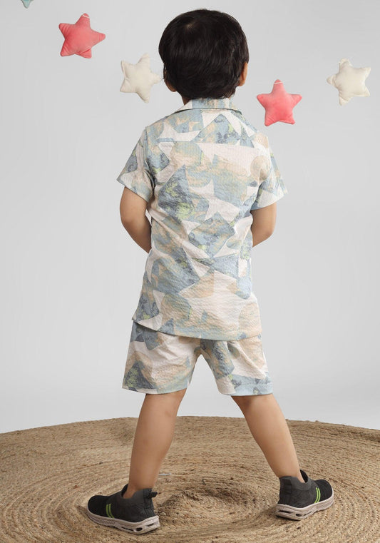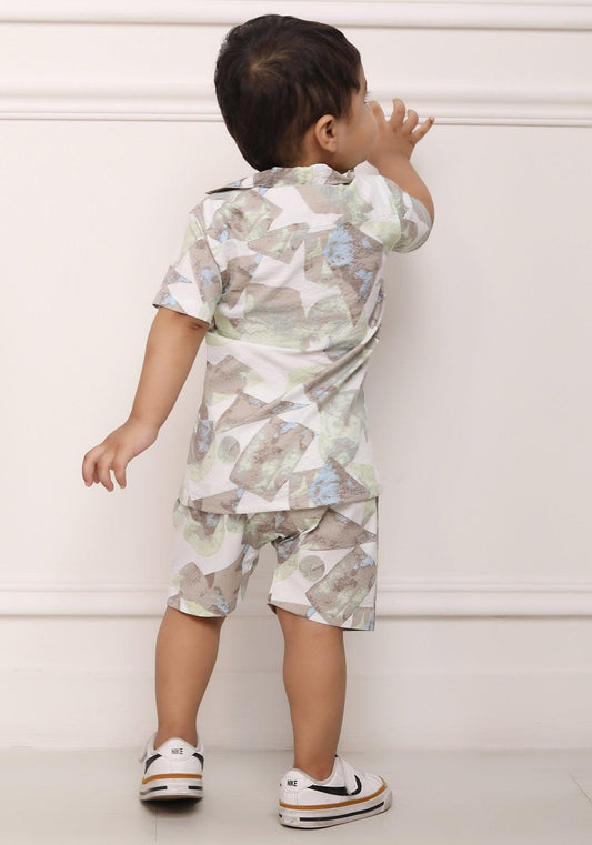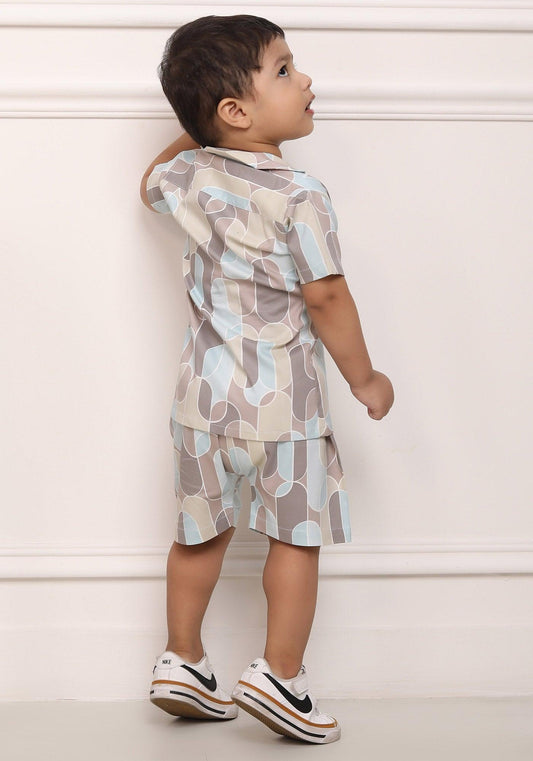 Polka Tots Half Sleeves Geometrc print Co-ord Shorts - Brown