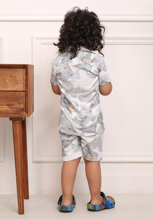 Polka Tots Cotton Half Sleeves Shirt With Shorts/Co-ord - Grey