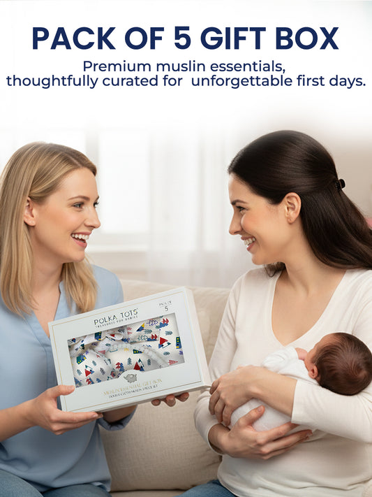 Polka Tots Newborn Pack of 5 100% Soft Double-Layer Muslin Cotton Essentials Gift Box – Tiny Town Print