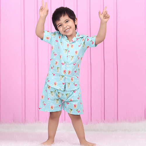 Polka Tots Half Sleeves Juice print Co-ord Shorts - Blue