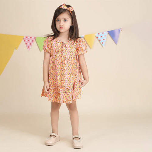 Polka Tots Sleeveless Tiny Town print frock with headband - Multicolor
