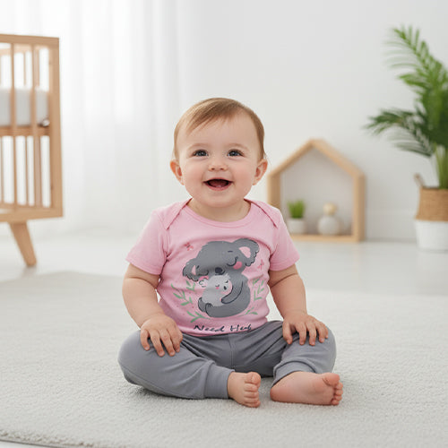 Polka Tots Full sleeves Bear and Penguin Print Night Suit - Peach