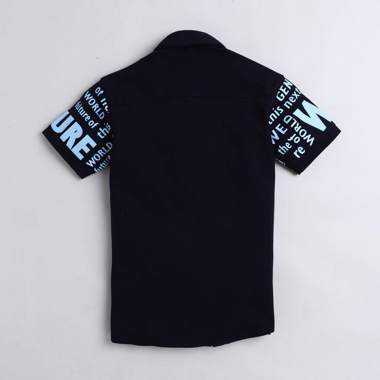 Polka Tots Half Sleeves Text Printed Shirt - Navy Blue