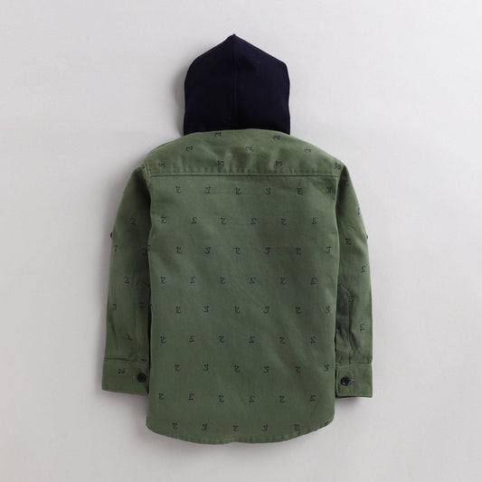 Polka Tots Full Sleeves Printed Hooded Kids Shirt - Green