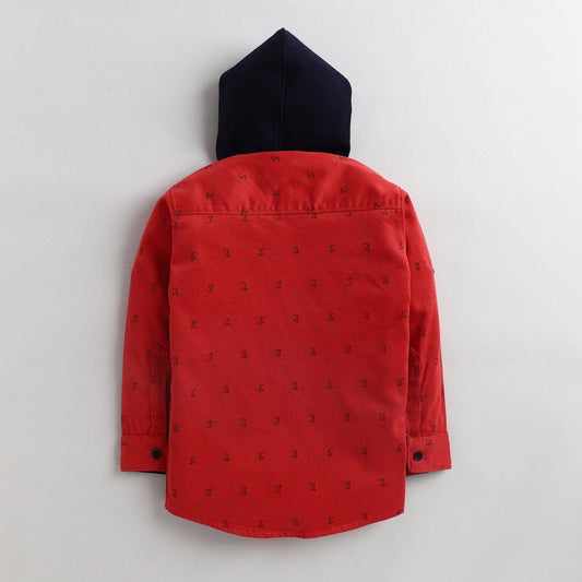 Polka Tots Full Sleeves Printed Hooded Kids Shirt - Red