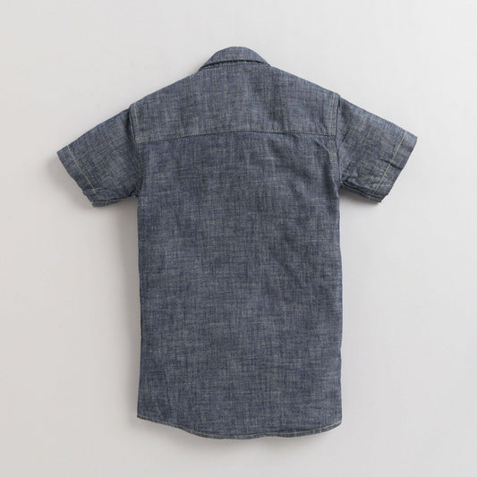 Polka Tots Half Sleeve Denim Shirt Blue (Lion)