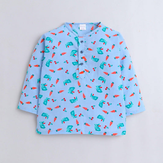 Polka Tots Carrot print Full sleeves Nightwear Kurta pyjama set - Blue