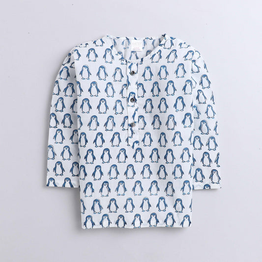 Polka Tots Penguin print Full sleeves Nightwear Kurta pyjama set - Blue