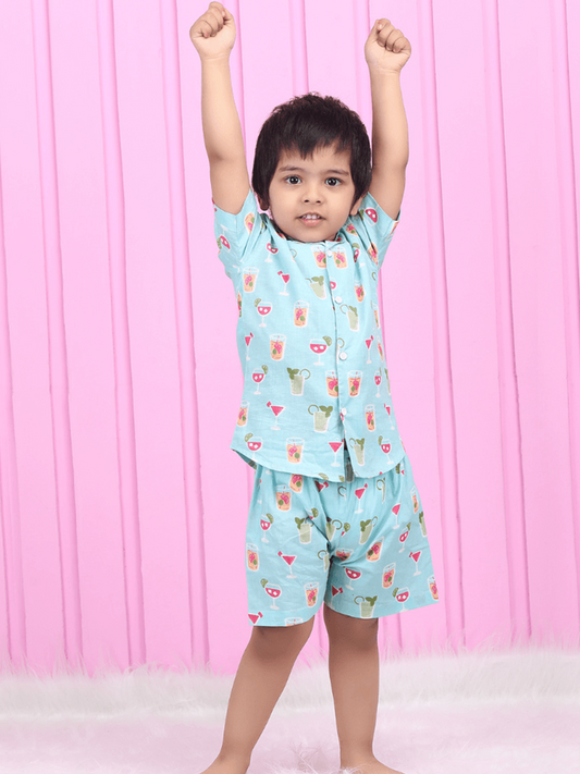 Polka Tots Half Sleeves Juice print Co-ord Shorts - Blue