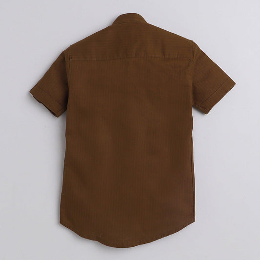 Polka Tots Cotton Regular Fit Half Sleeve Self Hero Metallic Print Shirt - Sea Green
