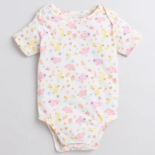 Polka Tots Half Sleeve Romper Onesie 100% Super Soft Cotton With Head band and Funny Animals - White