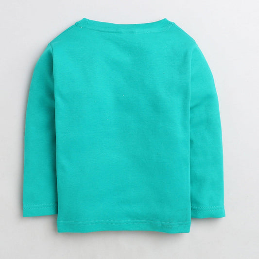 Polka Tots Full Sleeves Monkey Printed Tshirt - Sea Green