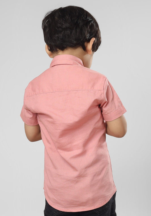 Polka Tots Half Sleeves Solid Shirt - Peach