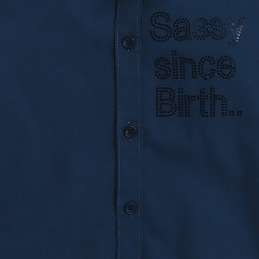 Polka Tots Cotton Regular Fit Sassy Since Birth Diamonds Party Wear Shirt With Bow Tie - Navy Blue