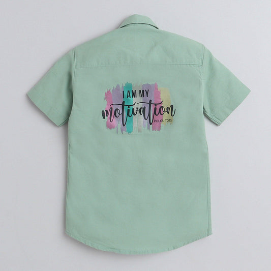 Polka Tots Cotton Regular Fit Half Sleeve Self Hero Metallic Print Shirt - Sea Green