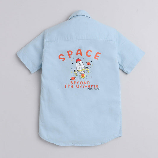 Polka Tots Cotton Regular Fit Half Sleeve Rocket Print Shirt - Sky Blue