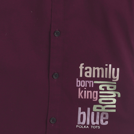 Polka Tots Cotton Regular Fit Half Sleeve Family Born King Metallic Print Shirt - Dark Maroon