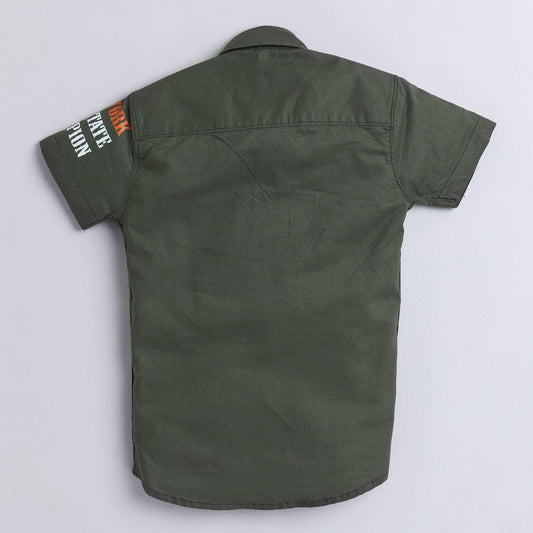 Polka Tots Full Half Sleeve Kids Shirt 2 Pockets Sleeves Print - Green