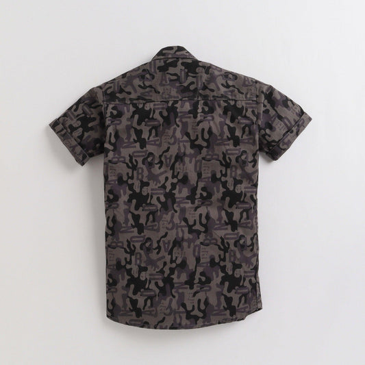 Polka Tots Half Sleeves Camouflage Print Detailing Shirt - Grey