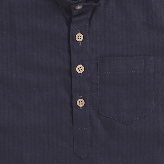 Polka Tots Half Sleeve Short Kurta Elephant Embroidery - Navy Blue