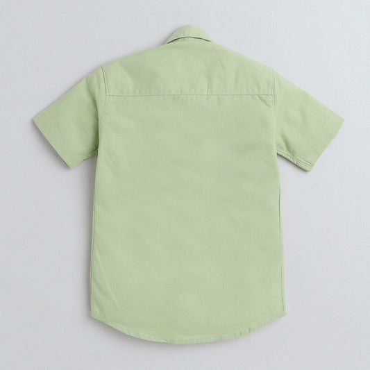 Polka Tots Cotton Regular Fit Half Sleeve Summer USA Metallic Print Shirt - Pista Green