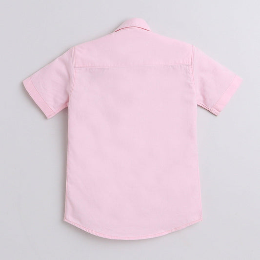 Polka Tots Cotton Regular Fit Half Sleeve My Dad My Hero Metallic Print Shirt - Baby Pink
