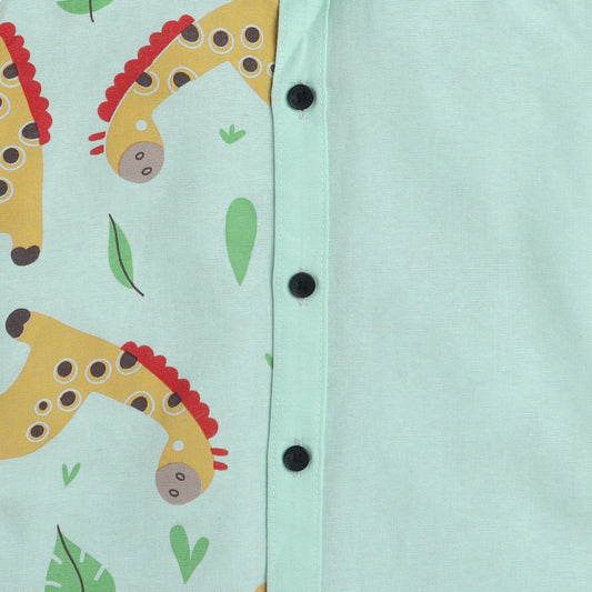 Polka Tots Cotton Regular Fit Half Printed Giraffe Theme Shirt - Sea Green
