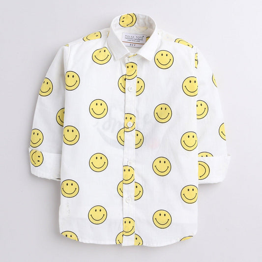 Polka Tots smile print full sleeve shirt with attached tshirt - White