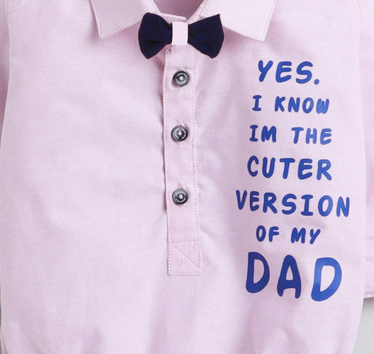 Polka Tots Full Sleeve Onesie with Bow Tie - Pink