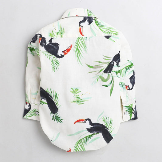 Polka Tots Full Sleeve black bird printed Onesie with bow tie - white