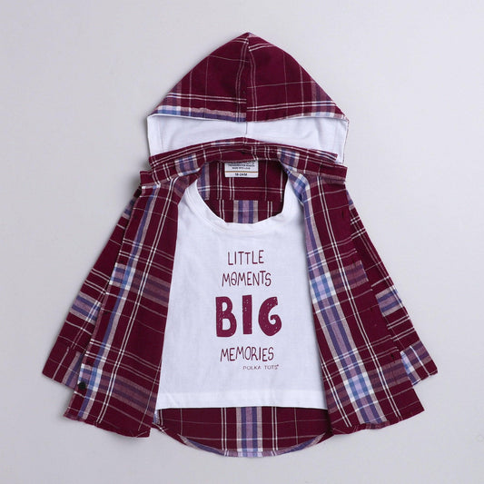 Polka Tots plain party Kids shirt with wood bow tie and stripe suspender - Maroon