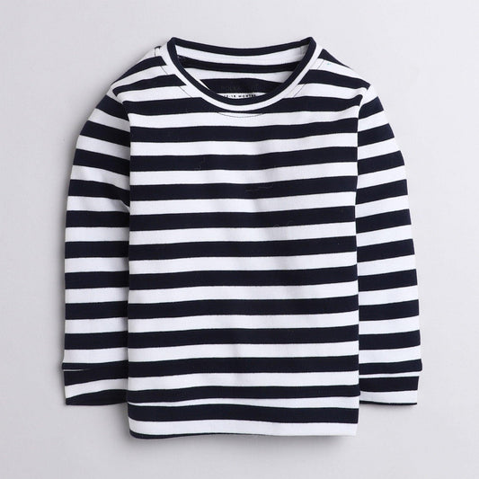 Polka Tots Full Sleeve Tshirt With Lounge Pants - Blue And White