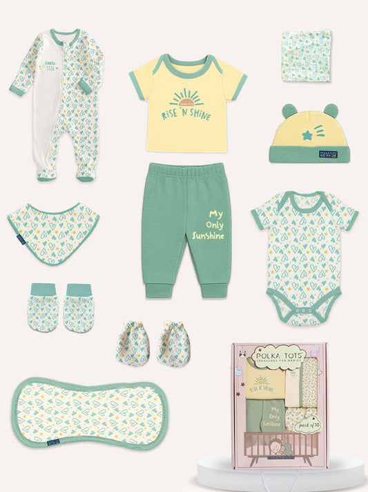 Polka Tots Cotton Full Sleeve Lotus Print Angrakha Top With Dhoti - Yellow