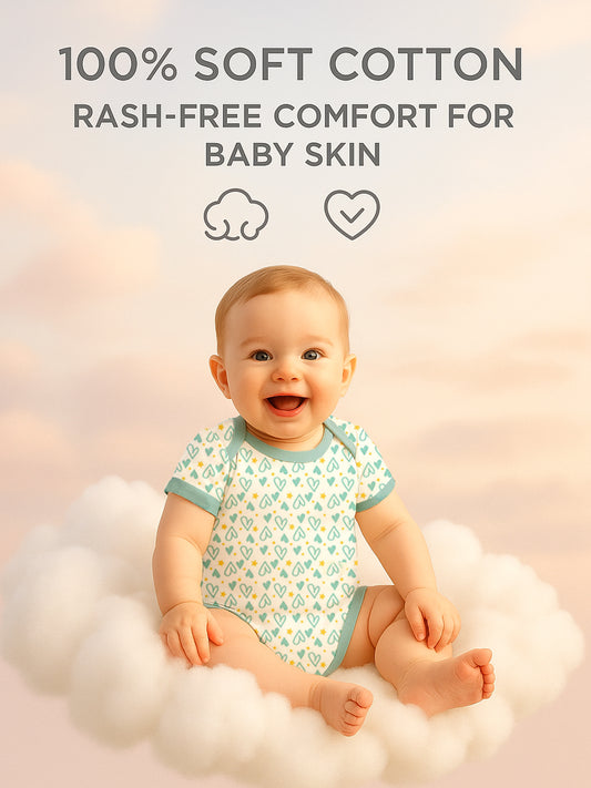 Polka Tots 100% Soft Muslin Cotton 3-Layer Reversible Baby Blanket/Dohar with Pom-Pom Lace - Mini Hearts & Bloomy Bear Print