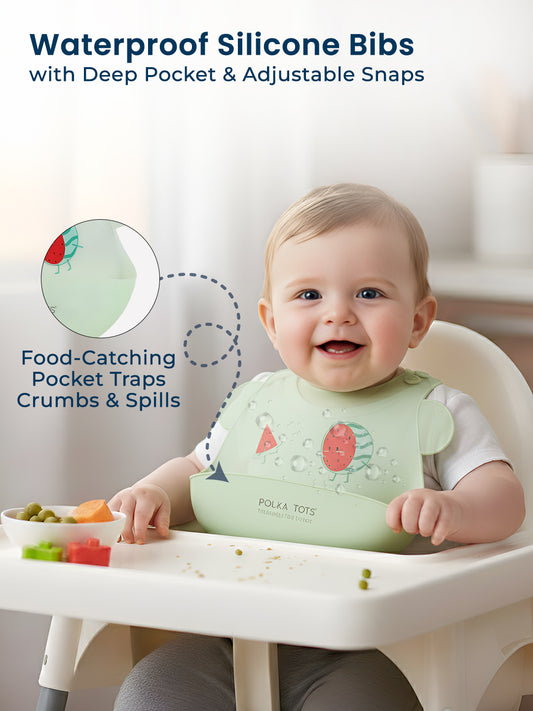 Polka Tots Waterproof Silicone Bibs with Pocket and Adjustable Snaps (Watermelon)