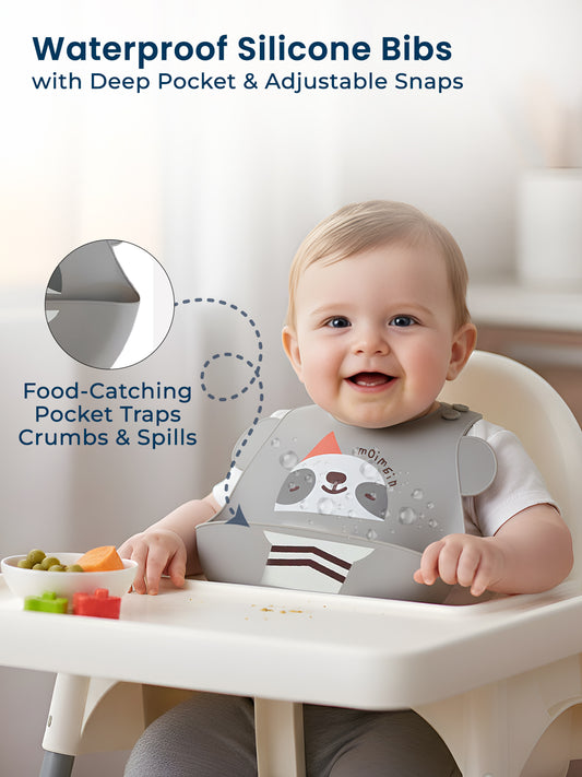 Polka Tots Waterproof Silicone Bibs with Pocket and Adjustable Snaps (Grey Sloth)