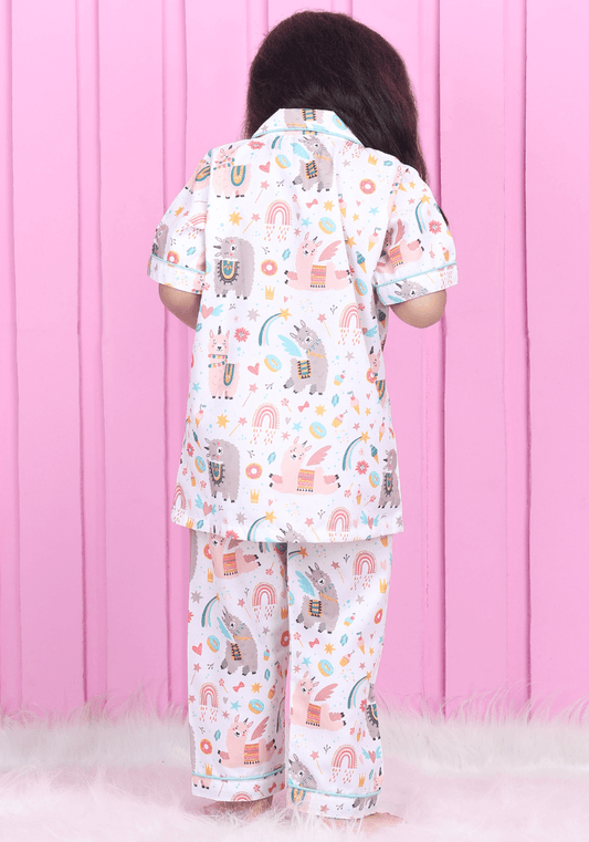 Polka Tots Half Sleeve Night Suit Pair Cotton Unicorn - Pink