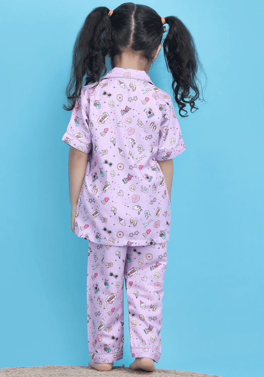 Polka Tots Half Sleeves Ice-cream print Night Suit - Purple