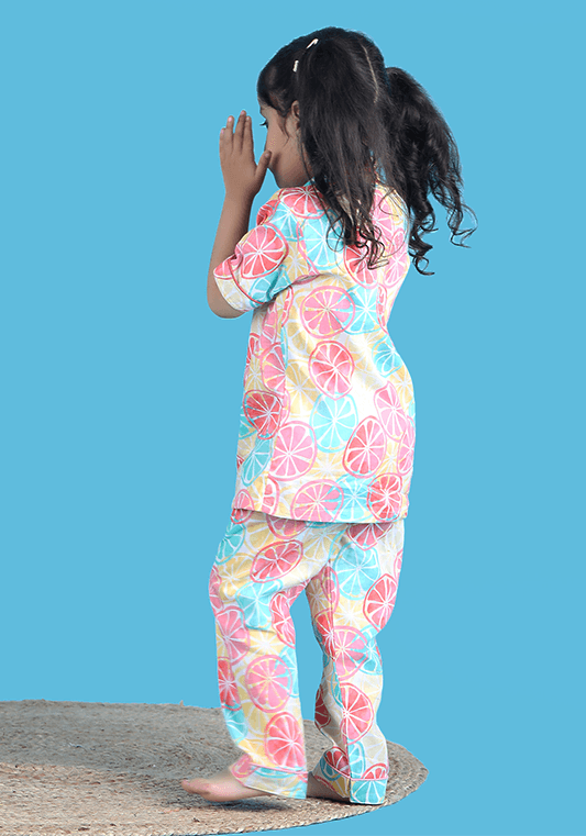 Polka Tots Half Sleeve Lemon print Night Suit - Multicolor