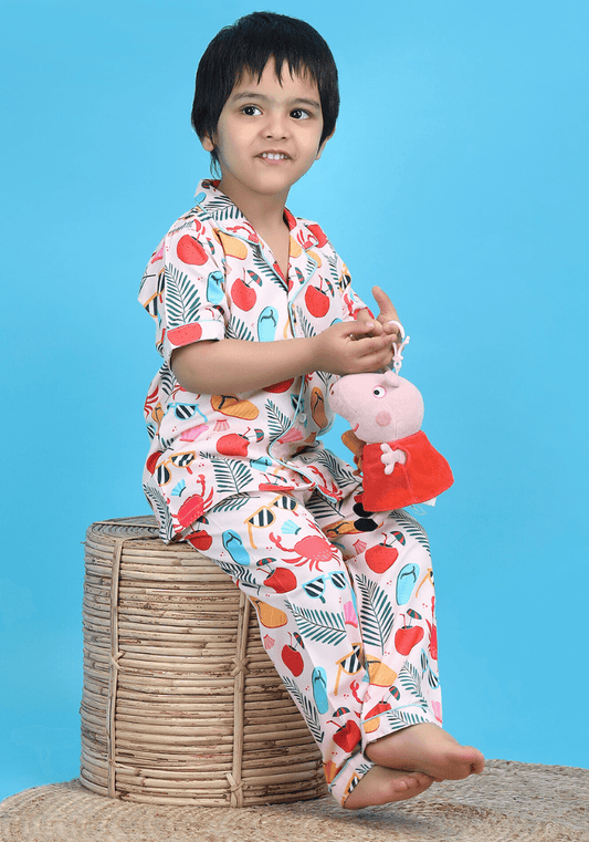 Polka Tots Half Sleeves Beach print Night Suit - Multicolor