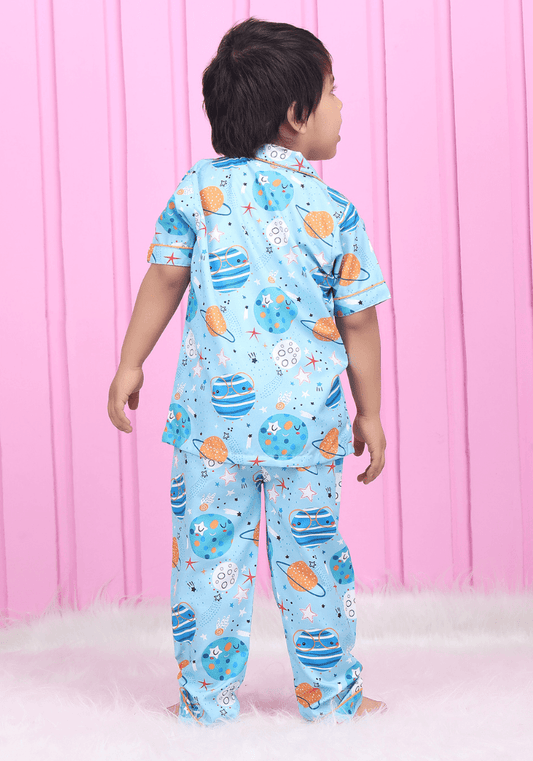 Polka Tots Half Sleeves Space print Night Suit - Blue