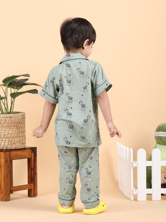 Polka Tots Half Sleeve Zebra print Night Suit - Green