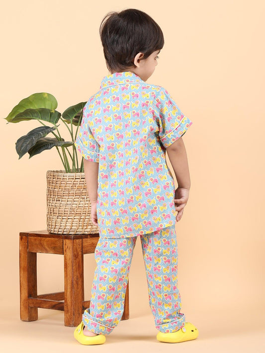 Polka Tots Half Sleeves Lion print Night Suit - Light Blue