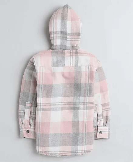 Polka Tots Full Sleeves Checked Hooded Shirt - Pink
