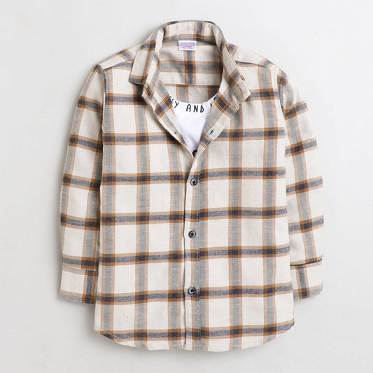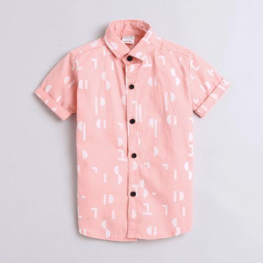 Polka Tots Half Sleeves Abstract Print Shirt With Attached Tee - Peach