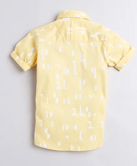 Polka Tots Half Sleeves Abstract Print Shirt With Attached Tee - Yellow