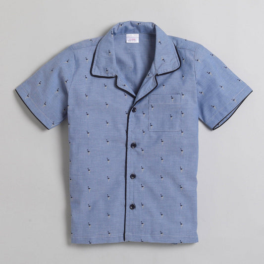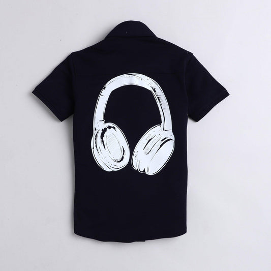 Polka Tots Half Sleeves Hip Hop Printed Shirt - Navy Blue