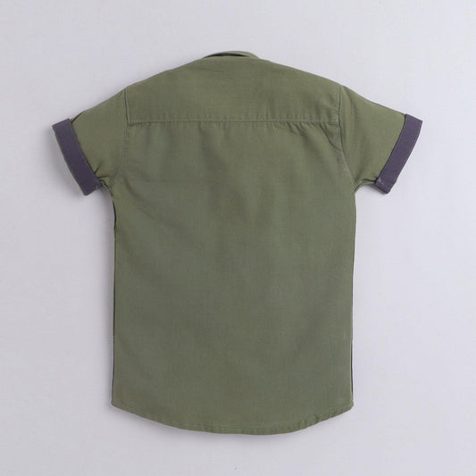 Polka Tots Half Sleeves Crocodile Print Shirt - Green