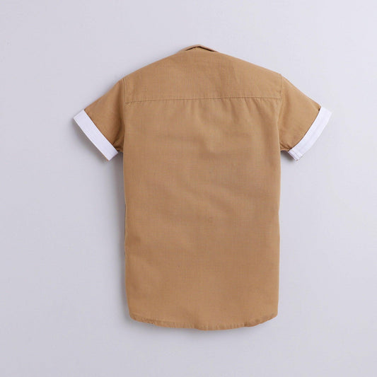 Polka Tots Full Sleeves Crocodile Patch Detailing Kids Shirt - Brown