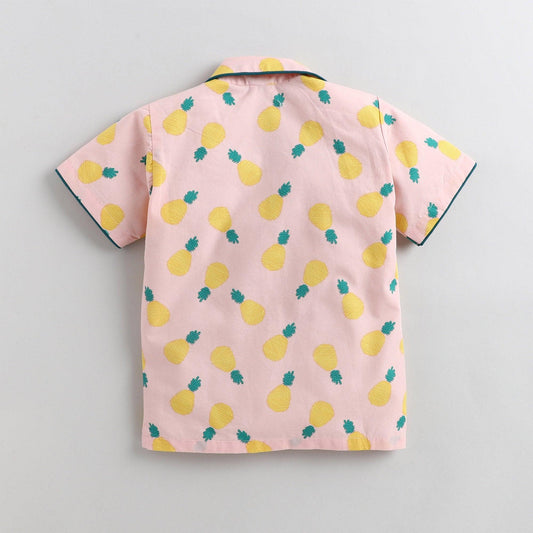 Polka tots Half Sleeve Night Suit Pink (Pineapple)